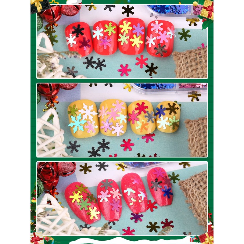 - BEAUTIFUL CHRISTMAS DECORATION Snowflakes nail glitter is perfect for making Christmas decorations. You can use it to decorate Christmas invitation cards and gift bags that will surprise your guests. Or decorate wherever you like to make your Christmas party more beautiful.