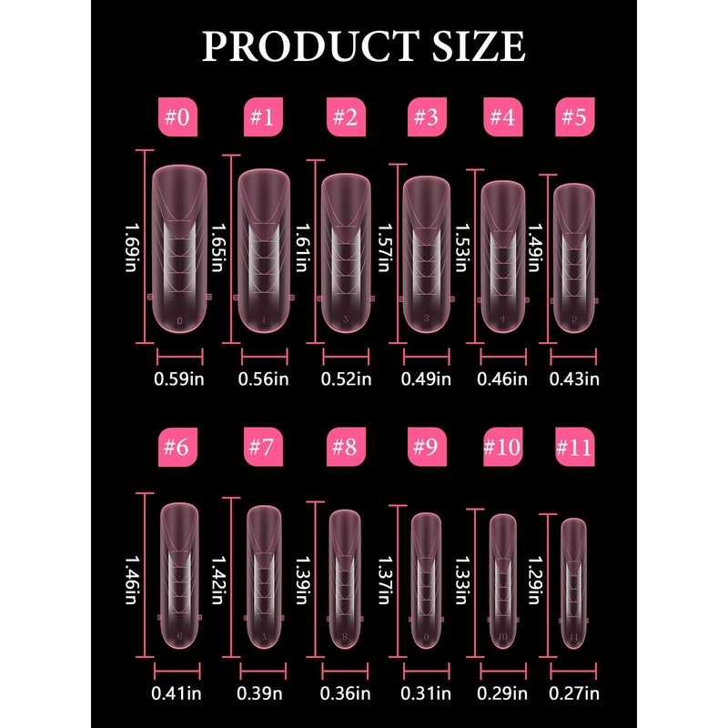 1. Made of high quality materials, non-toxic, odorless, strong and reusable. 2. 12 different sizes and each shape has a pre-coded 0-11, which can help you choose the right nail shape quickly. 3. The nail form with box is easy to carry and store.