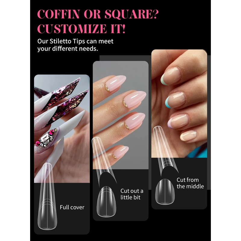 EBANKU 150PCS Polygel Tips Nagelformen, Wiederverwendbar Dual Tips Nägel für Nagelverlängerung Langer Acryl Sarg Nagel Erweiterung Tips Nagelspitzen Form, 15 Größen(Stiletto)