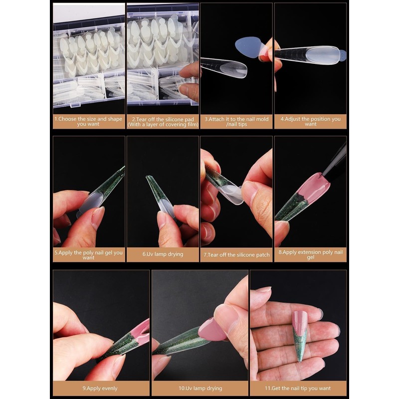 - ⭐【Einfach zu verwenden】Wählen Sie eine geeignete Nagelform, tragen Sie das Gel auf die Form auf, drücken Sie es sanft 5–8 Sekunden lang auf den natürlichen Nagel, härten Sie es mit einem LED-Licht aus, entfernen Sie die Nagelform und feilen Sie in Ihrem bevorzugten Formstil.