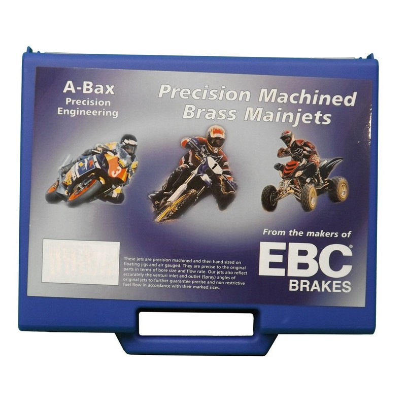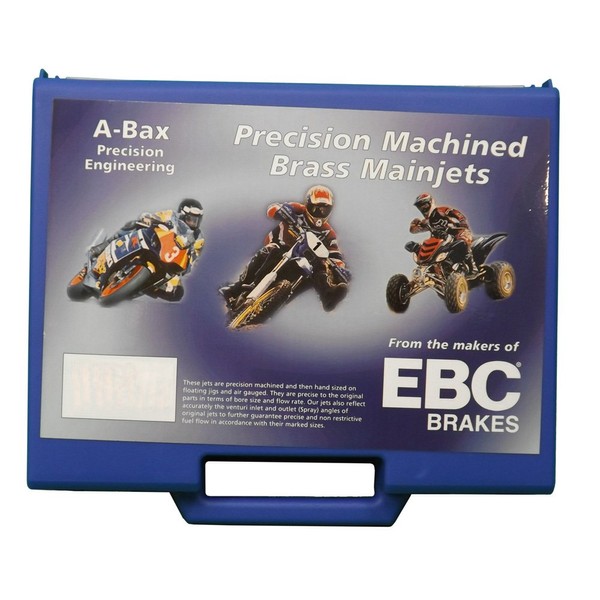 - ''' High precision brass main jets for Mikuni carburetors using 4/042 hex style main jets#||# Kit contains 2 pieces each jet sizes 70 thru 230 for a total of 54 jets#||# Mikuni 4/042 hex main jets measure 11.5mm long (6.5mm hex body length/5mm thread length)#||# EBC main jets are precise, clearly marked and reliably gauged using pin gauges, and accurate to one tenth of a thousandth of an inch#||# All jets are flow calibrated and extremely accurate in terms of fuel flow rate as stamped'''