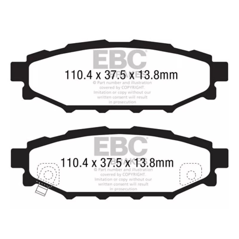 Designed for premium street driving offering better brake effect up to 600-degrees C (1100-degrees F). EBC Greenstuff has a high initial brake effect and gives drivers confidence from first application of the brake pedal. There is no such thing as a NO DUST pad. The very nature of how a brake works requires that some dust be generated to avoid rotor vibration (shimmying). The EBC pad creates less dust and dust is more easily washed off than most. All pads create more dust as they are bedding in especially if rotors are worn. Nominal friction coefficient 0.55. For heavier faster cars and vehicles above 200bhp we strongly recommend Redstuff which DOES offer much less dust. EBC Greenstuff 2000 series is a high friction pad designed to improve stopping power on sport sedans and prestige cars alike. The Greenstuff range emits less dust and feature the EBC brake-in surface coating to accelerate pad bed in. DO NOT FIT UPGRADE PADS TO REAR OF VEHICLE UNLESS SAME UPGRADE FITTED TO FRONT, The ?Thermic Black coating? does NOT need to be removed before install. Do NOT use brake cleaner or any other method to remove Thermic Black coating from discs rotors. The Thermic black coating will be removed in the pad swept area by the brake pads with in the first 10 to 20 stops made after installation on the vehicle.The ?Thermic Black coating? is an anti corrosion coating for long resistance against rust. Attempting to remove Thermic Black Coating with brake cleaner or any other method is NOT covered under EBC warranty 2012 and up SUBARU BRZ 2.0 (solid rear rotors)