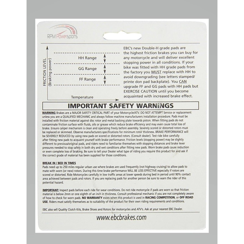 brake pads rear disc. The friction compound of these pads Double-H Sintered