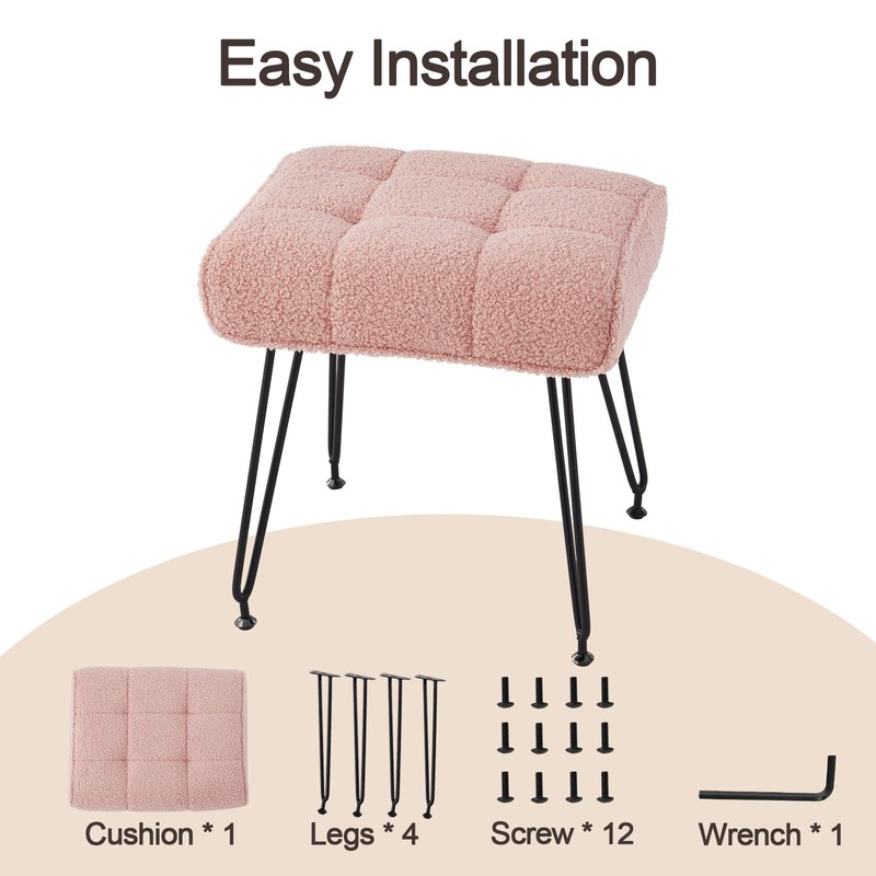 Can be used as a makeup stools for dressing table, an additional seat for guests, a foot stools for sofa, a footrest ottoman for couch, a small bench for entrance, and a step stool for adults. 【EASY TO ASSEMBLE】: