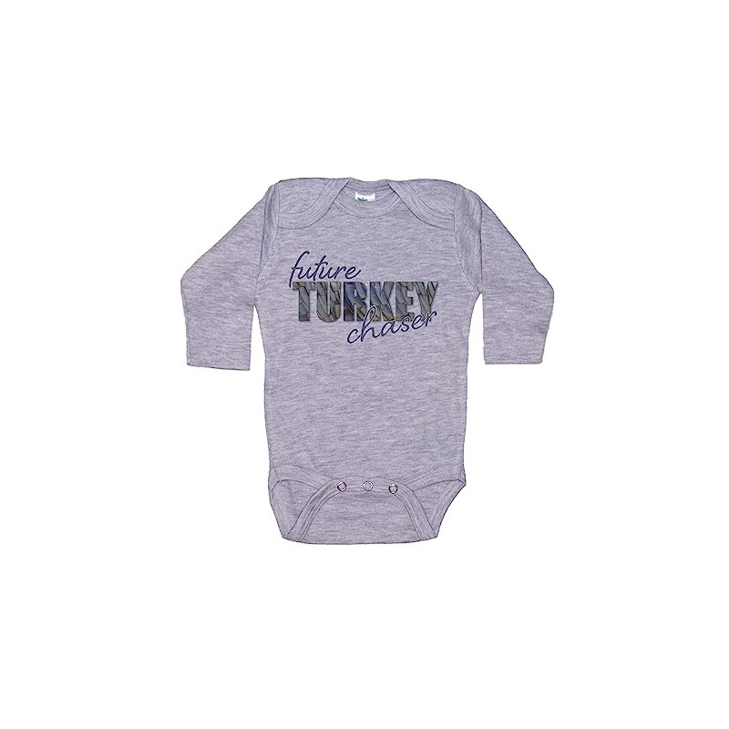 Ebenezer Fire Hunting Baby Onesie/Future Turkey Chaser/Baby Turkey Outfit/Turkey Hunter Baby Bodysuit/Unisex Infant Romper (Grey LS, 12-18M)