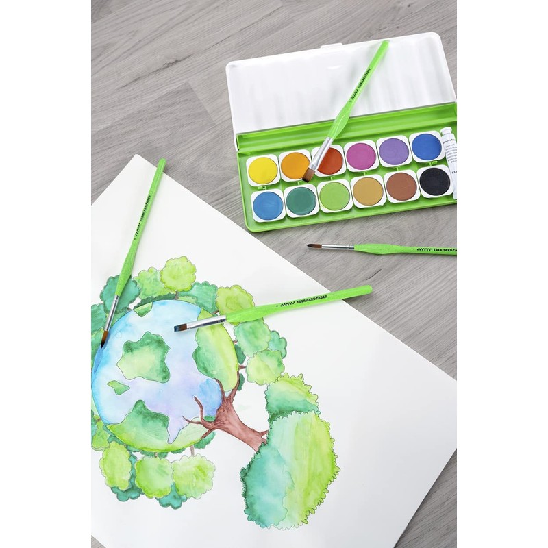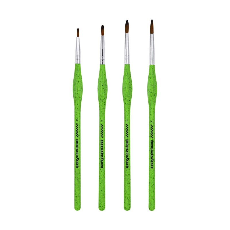 Eberhard Faber 579926 Synthetic Brush Set Green Winner, 4 Round Brushes 0, 1, 2, 4