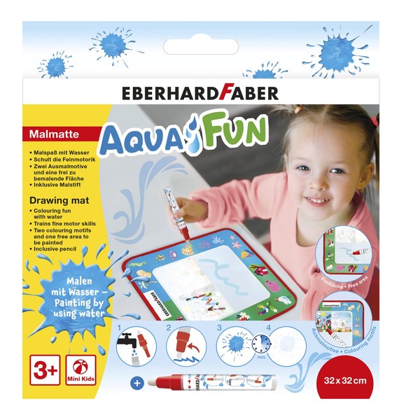Eberhard Faber Aqua Fun 524130 Painting Mat Approx. 32 x 32 cm with 2 Colouring Motifs and Free Painting Surface Including Aqua Pen