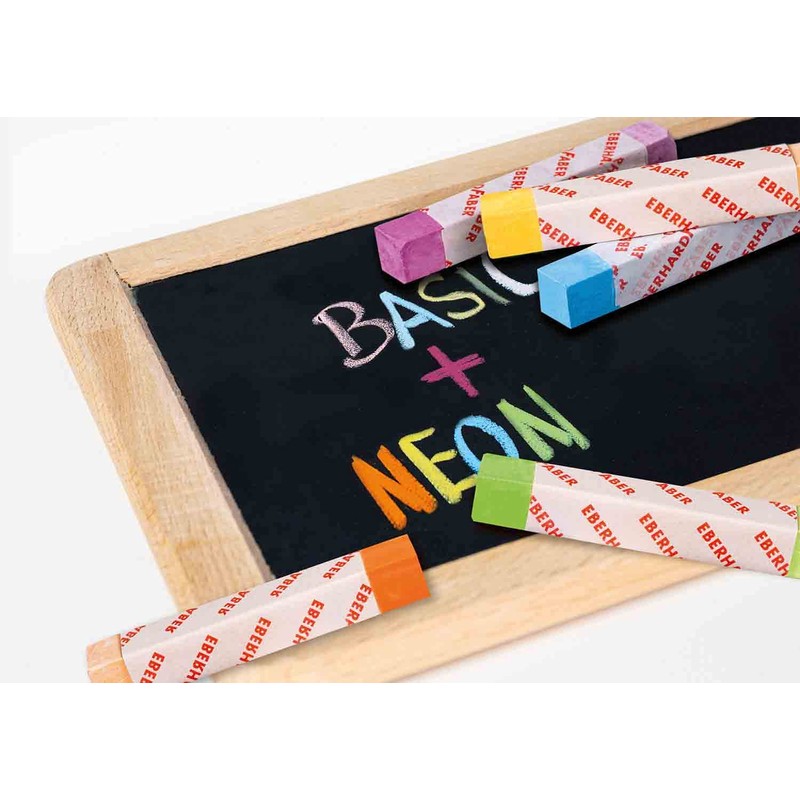 Eberhard Faber Colori 526012 Blackboard Chalks in 6 Basic and 6 Neon Colours, in Cardboard Case, Easy Wipe Clean Blackboard Chalk, Dust-Free, for School and Leisure