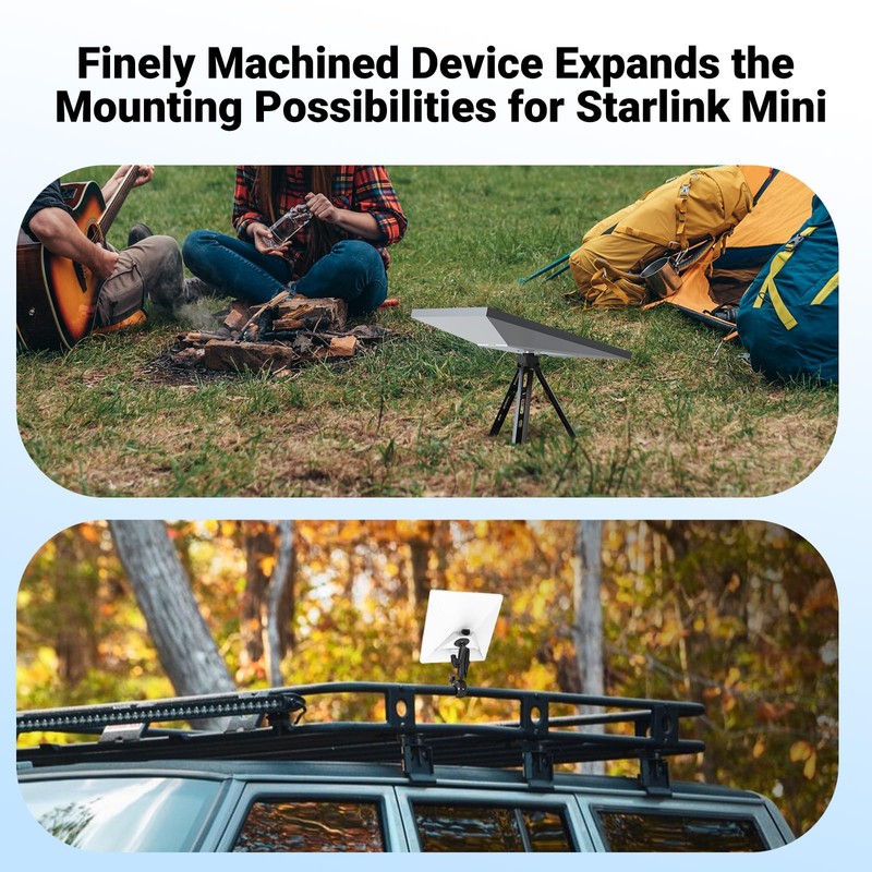 - Wide Compatibility: Equipped with a 1/4-20 threaded hole + 3/8-16 conversion screw (included), this adapter seamlessly connects to tripods, clamps, or RV rail mounts for Starlink Mini, transforming it into a versatile solution for rooftops, vehicles, tents, and more.
