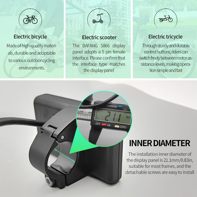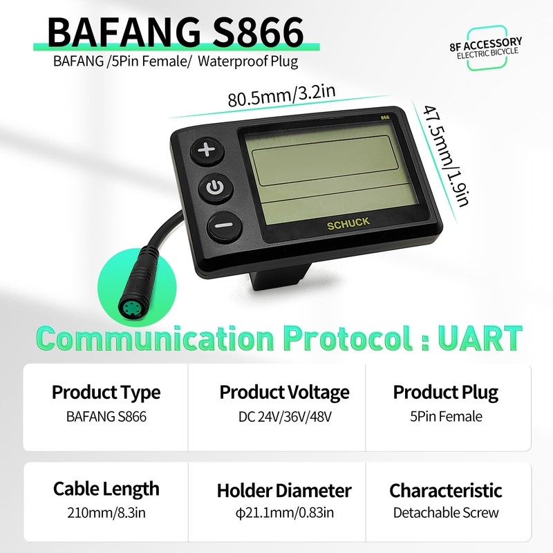 Ebike S866 LCD Mini Display for BBS01B BBS02B BBS HD Mid Drive 350W/500W/750W Motor Control Panel for Data Adjustment