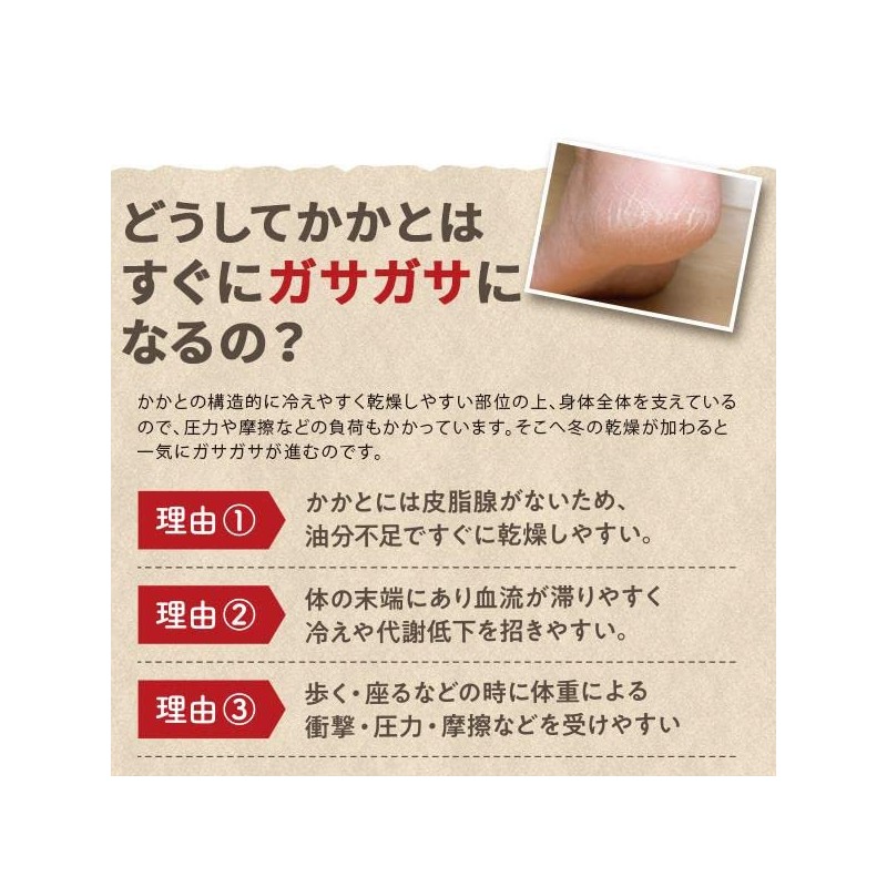 - Feature 1. Moisturizes and protects the heel of a lack of oil. Formulated with komenuka oil and jojoba oil that is good to the skin. Naturally derived komenuka oil and jojoba oil are known as an oil similar to human sebum, and moisturizes the heel that dries easily