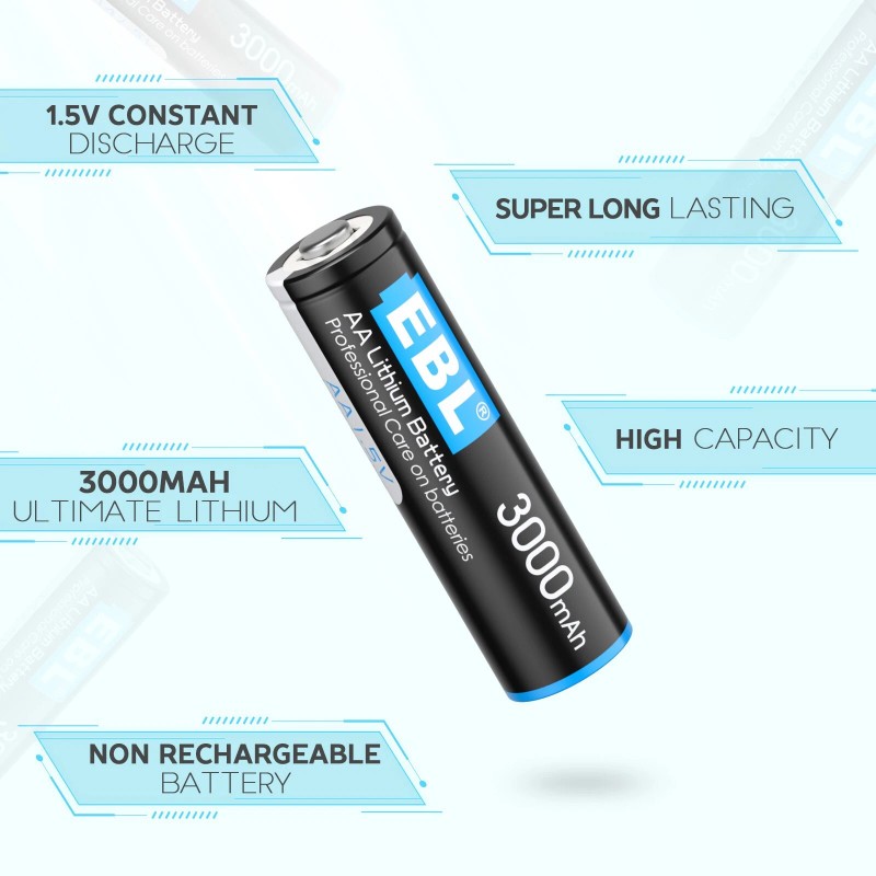 EBL Lithium AA Batteries 20 Pack, 3000mAh 1.5V AA Lithium Batteries High Performance Constant Volt Non-Rechargeable Batteries for High-Tech Devices (Non-Rechargeable)