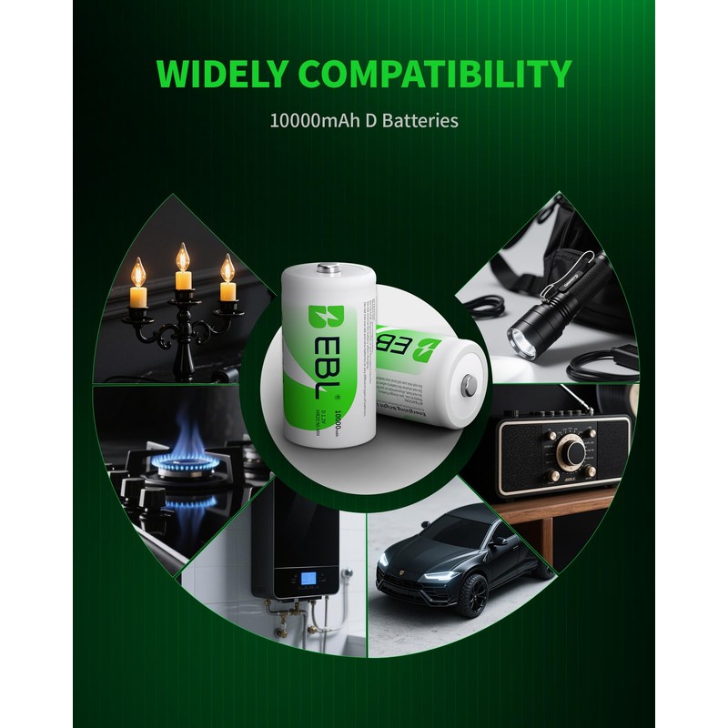 EBL D Battery D Size Rechargeable Batteries 10,000mAh Ni-MH, Pack of 6 - ProCyco Technology
