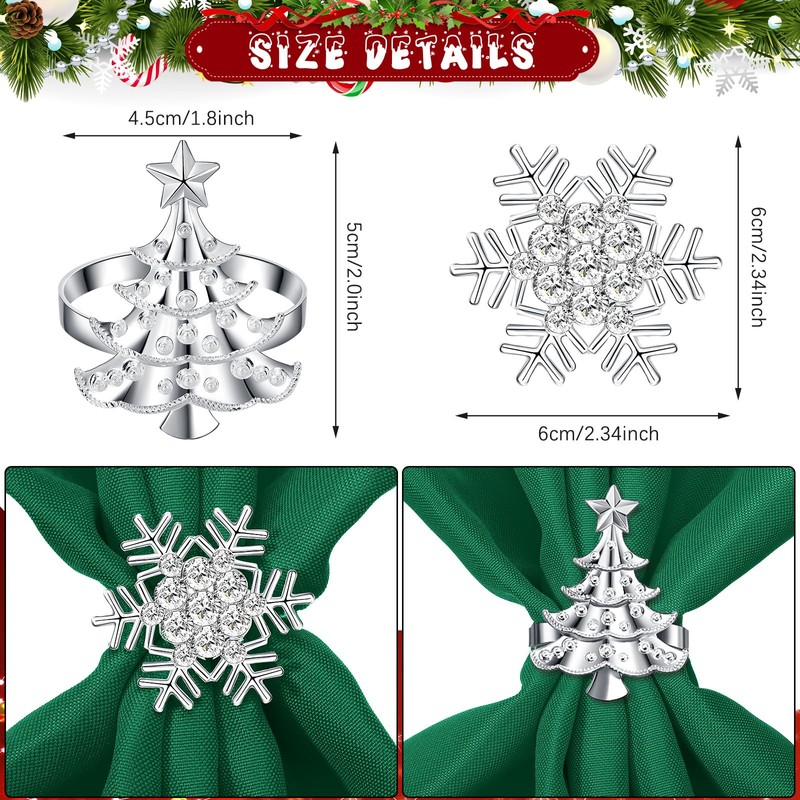 - Elegant Napkin Rings: the diameter is about 1.6 inches/ 4 cm, these Christmas napkin holders are made of strong metal and rhinestones, solid, smooth, and strong to use, not easy to deform, break, waterproof and reusable; With electroplating surface, the surface is not faded and is easy to clean; There are many firm rhinestones on them, which making your napkin ring very charming
