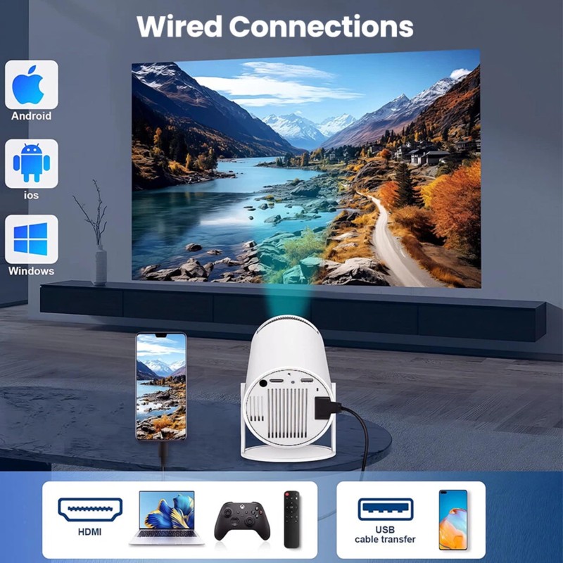 - COMPATIBILITY: Equipped with advanced Wi-Fi 6 technology, it seamlessly connects to both 2.4G and 5G networks for stable streaming. This compact projector is remarkably versatile, compatible with computers, mobile phones, and gaming consoles. Versatile connectivity options allow connection to mobile phones, computers, laptops and gaming consoles
