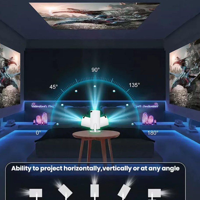 eBoutik - Portable Mini Projector with 180° Rotation 130 inch Screen - Compatible with Mobile Phone, Gaming, Laptop -4K WIFI Support, Home Theatre Video Projector