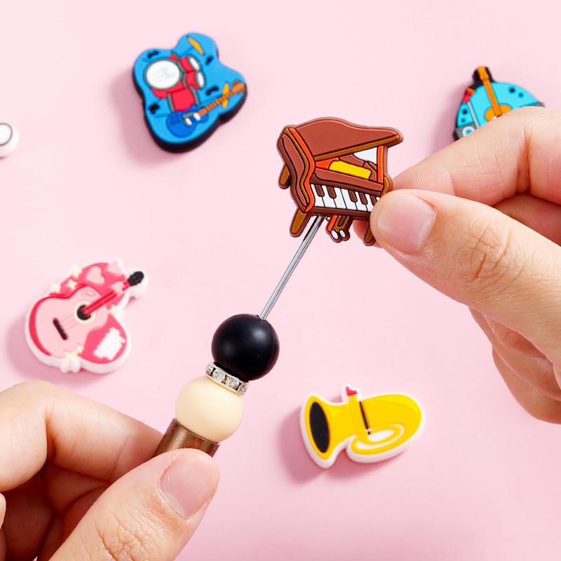 Ebristar Silicone Focal Beads, 10 Pcs Cute Music Theme Focal Beads for Pens Characters, Silicone Charm Beads Accessory Kit for Beaded Pens, Keychain Making & DIY Handmade Crafts