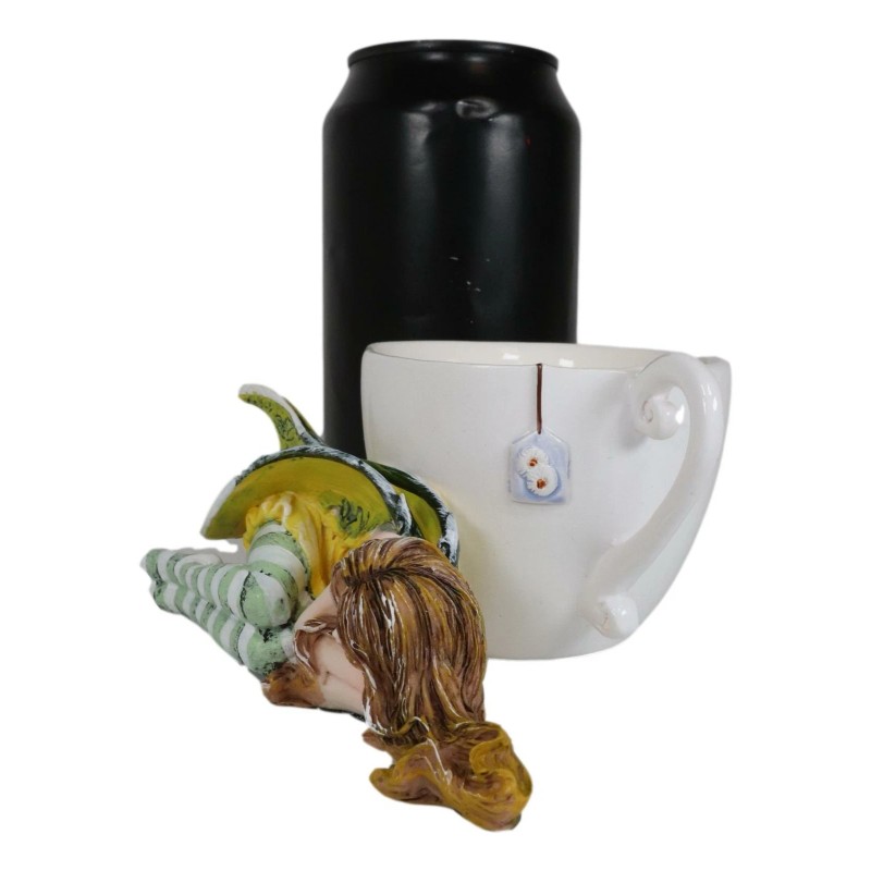 • This Beautiful Sleeping Chamomile Tea Cup Fairy figurine is made of designer composite resin, hand painted and polished individually. She is a Licensed artwork by Amy Brown.