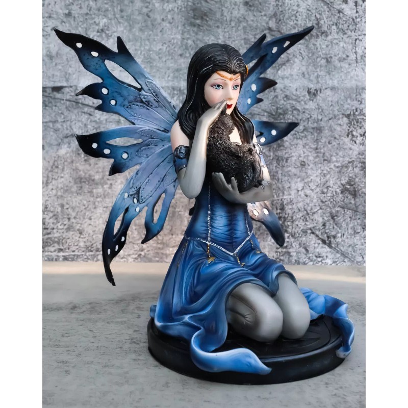 • This is a gorgeous and stunning piece of art. Our sculptors and painters have done an excellent job in creating great details to the face of the fairy and the overall flow of the body and the cat. Display this centerpiece in your home and watch it gain admiration from all eyes that see it.