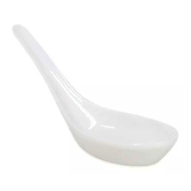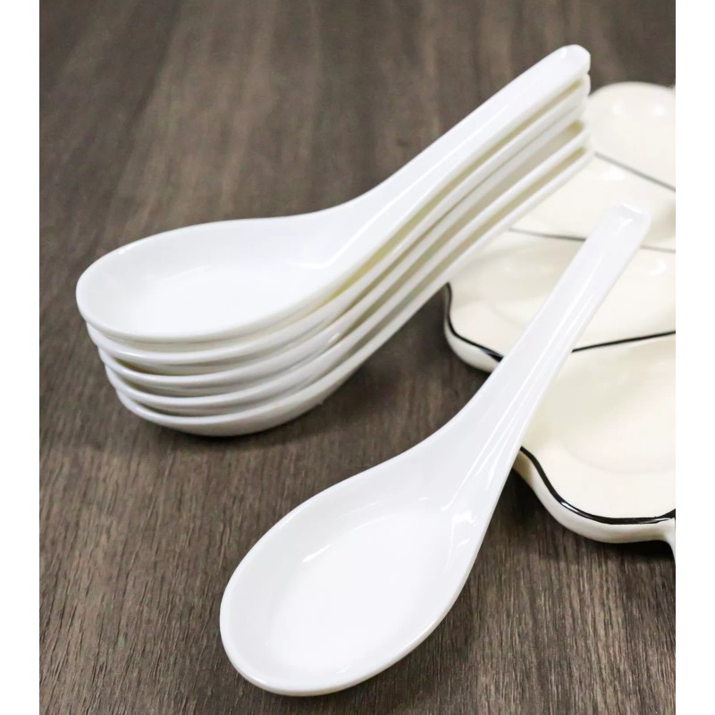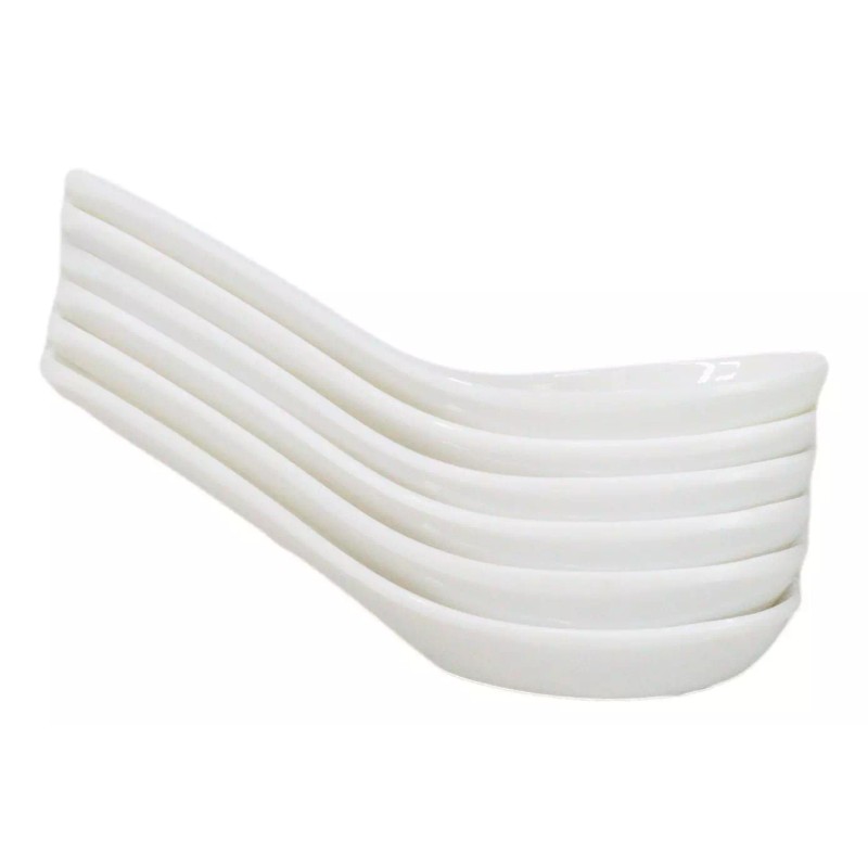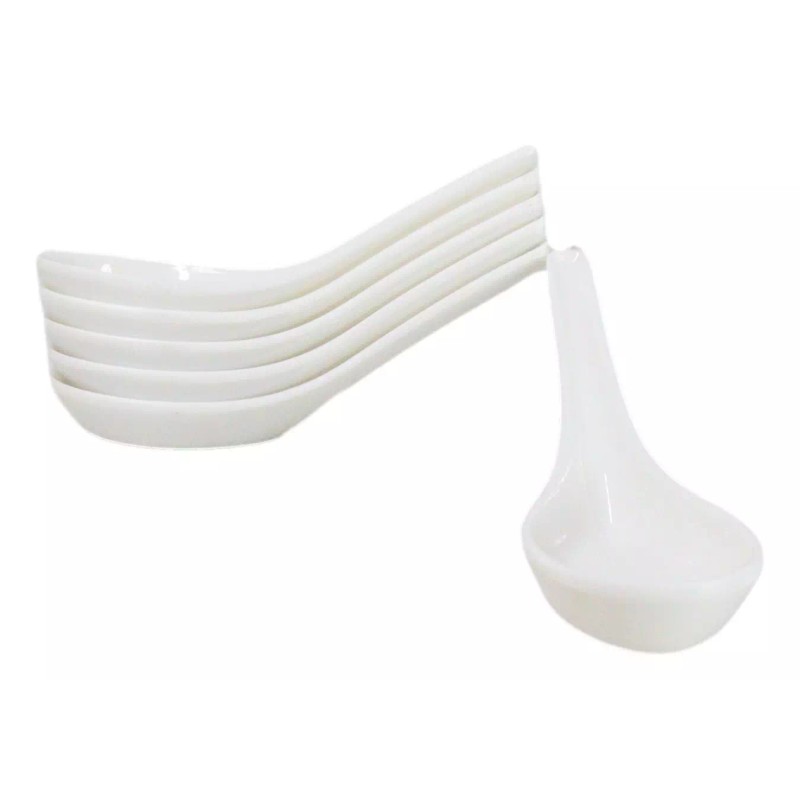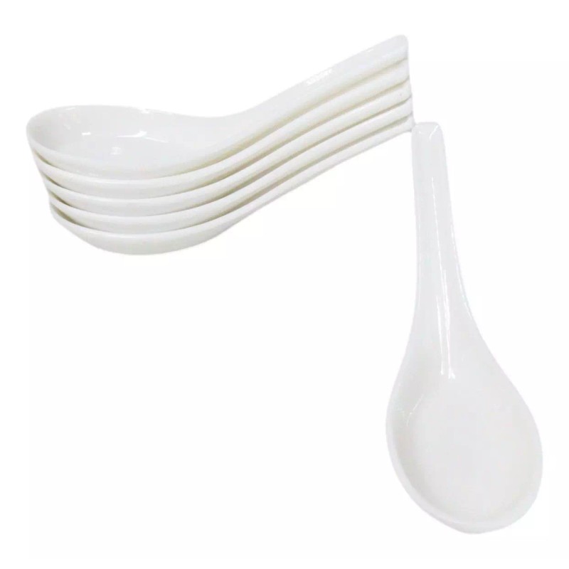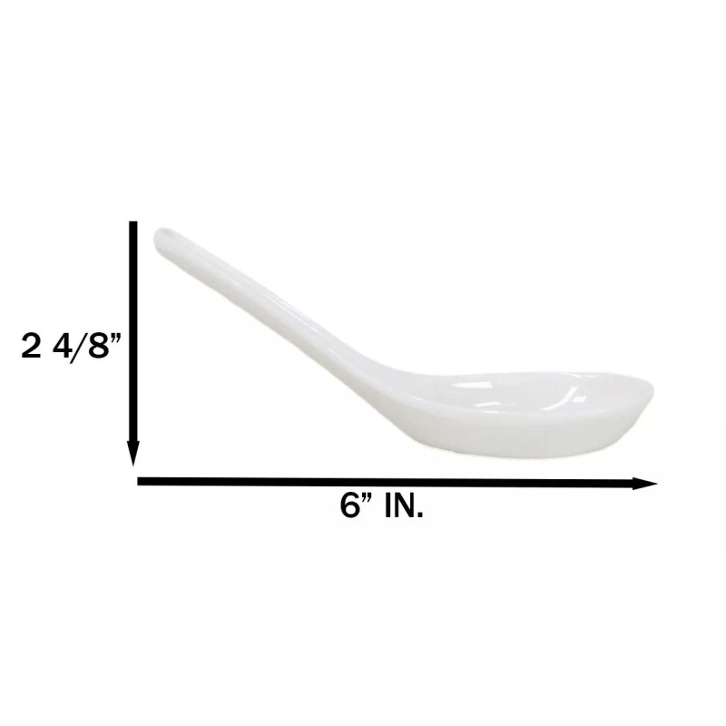 Ebros Gift Contemporary Glossy Finish White Melamine Asian Soup Spoons Pack Of 6 Set