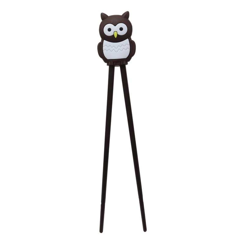 Ebros Gift Dark Brown Owl Reusable Training Chopsticks Set With Animated Food Safe Silicone Helper Hinge Guide For Sushi Noodles Rice Dining Fun For Adults And Kids