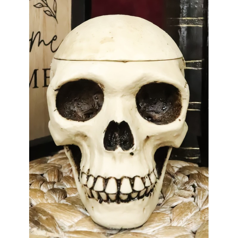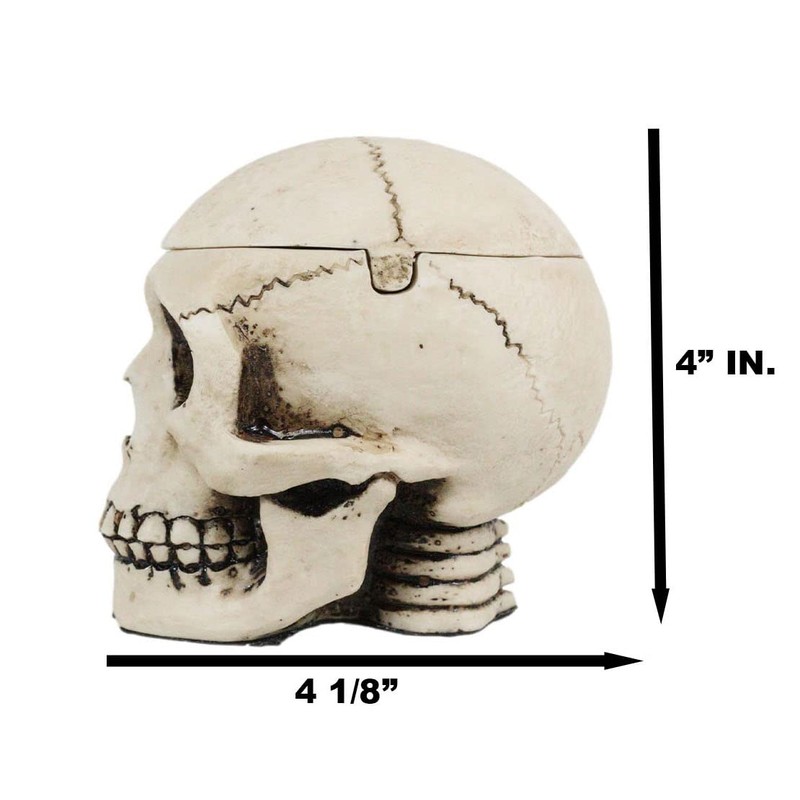 Ebros Gift Day of The Dead Ossuary Macabre Jointed Human Skull Replica Ashtray Or Decorative Box Figurine Halloween Skeleton Cranium Jewelry Trinket Stash Container Sculpture