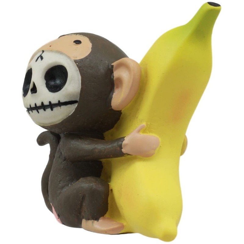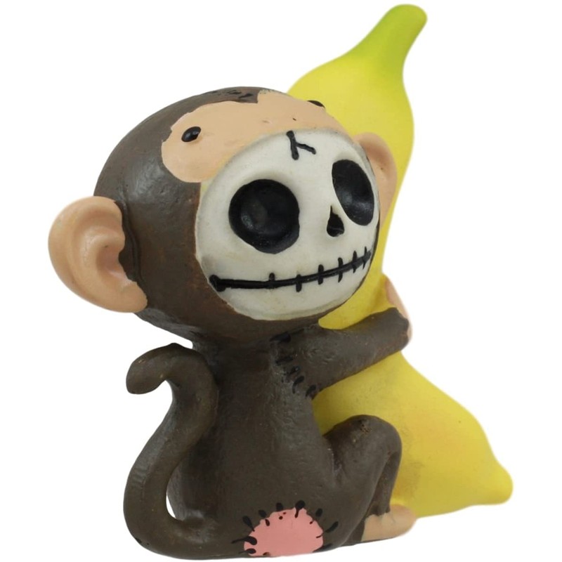 Ebros Gift Furrybones Baby Munky Monkey Loves Banana Voodoo Skeleton Figurine 3" Tall Furry Bones Monkey See Monkey Do Small Sculpture