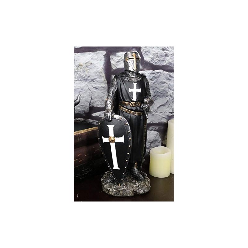Ebros Gift Holy Wars English Black Cloaked Crusader Knight of The Cross with Sword and Shield Statue 11" Tall Suit of Armor Warrior Swordsman Templar Knights Sculpture