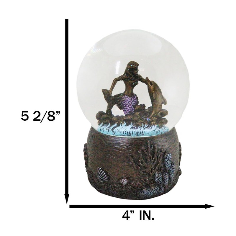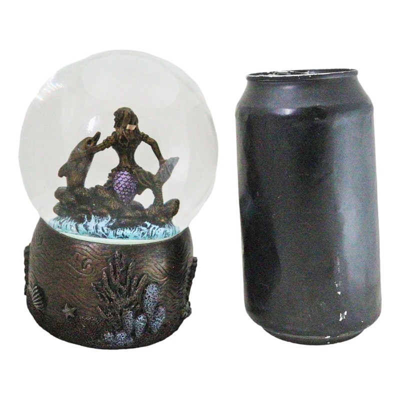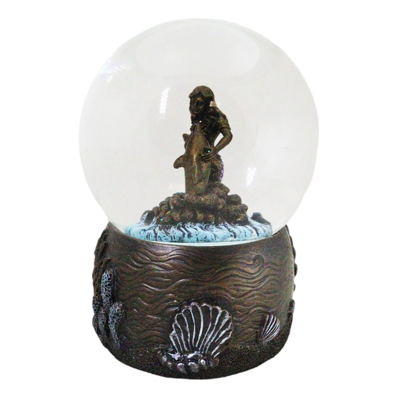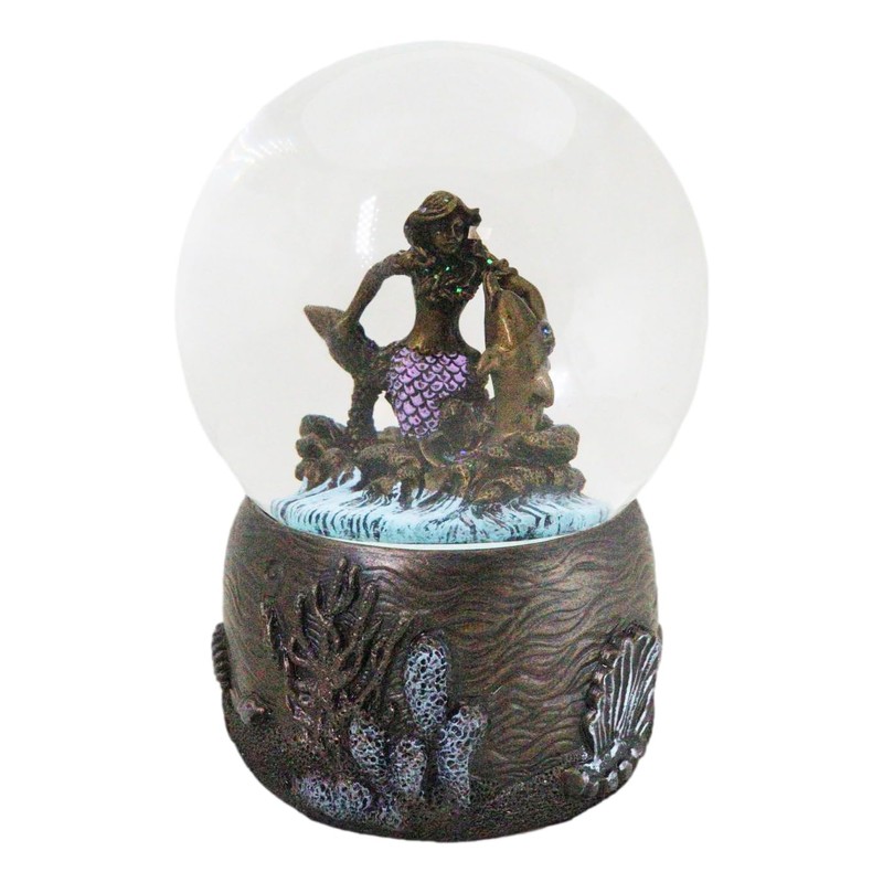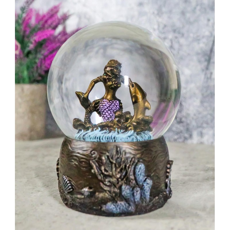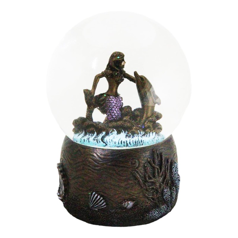- Dive into a world of enchantment with our Ocean Atlantis Goddess Mermaid Water Globe! This stunning piece features a beautifully detailed mermaid gracefully playing with a dolphin, capturing the magic of the sea in a mesmerizing display. As you shake the globe, shimmering water swirls around the enchanting scene, creating a captivating effect that brings the ocean to life. Perfect for mermaid lovers and collectors alike.