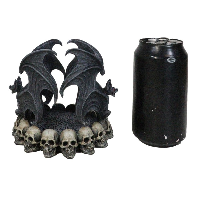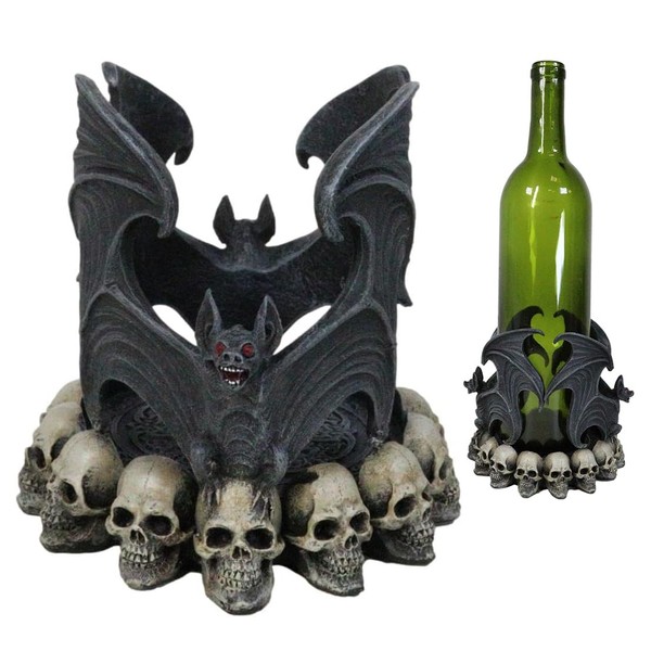 - Embrace the darkness with our Gothic Twin Bats on Graveyard of Skulls Candle or Wine Bottle Holder. This intricately crafted piece captures the essence of gothic mystique, featuring twin bats perched on a medley of skulls with Celtic knotwork symbols at the center. Whether you use it as a candle holder or a wine bottle holder, this piece adds a touch of macabre elegance to your space. Perfect for enthusiasts of gothic aesthetics, this sculpture is a statement piece for your home.