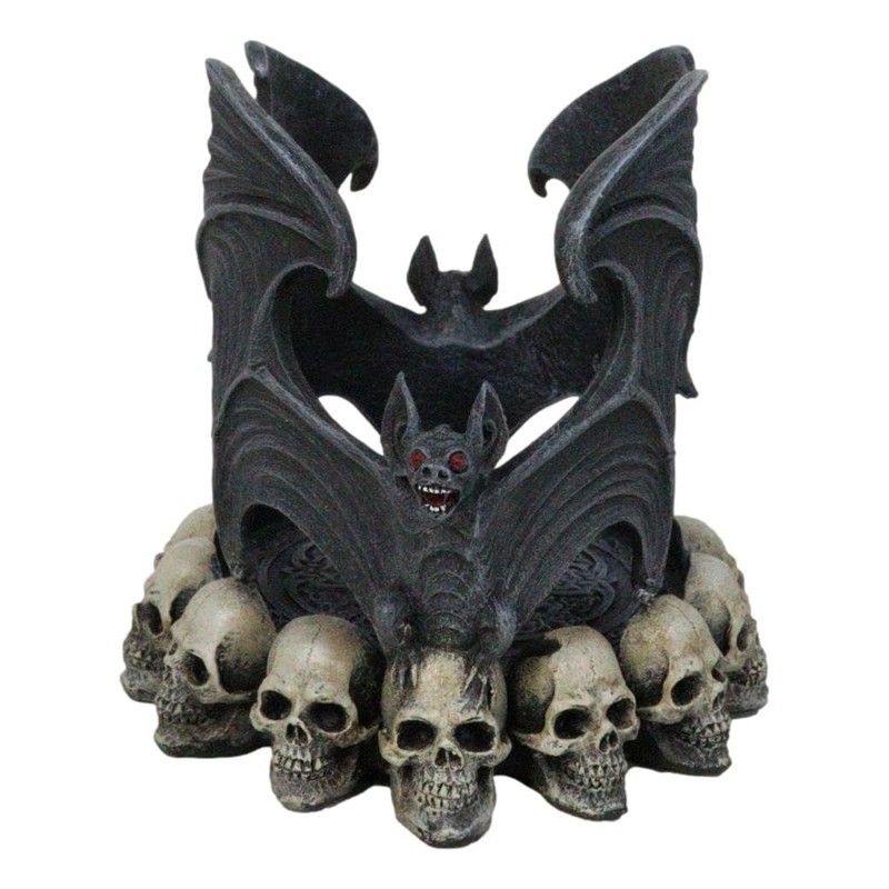 Ebros Gift Nosferatu Gothic Cathedric Twin Bats On Graveyard of Skulls Candle Or Wine Bottle Holder Figurine Day of The Dead Skeletons Macabre Bat Accent