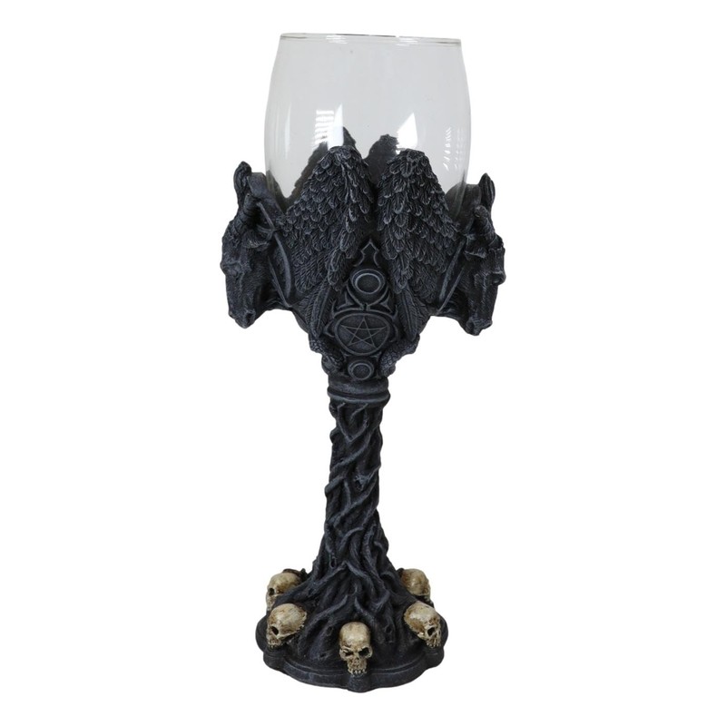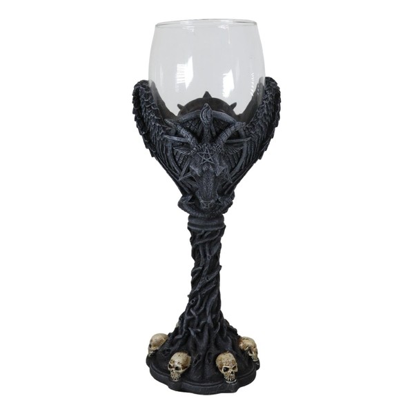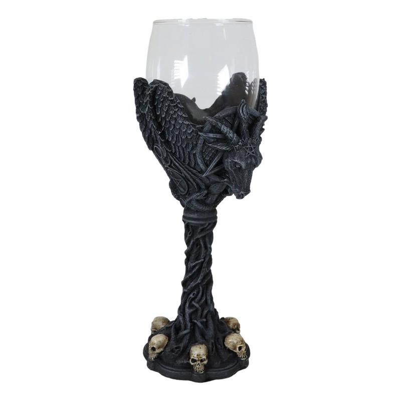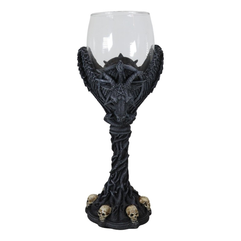 - Baphomet contains binary elements symbolizing a reconciliation of opposites, emblematic of the willingness to embrace, and even celebrate differences across individuals. This wine goblet features the face of Baphomet and the pentagram circle. The base of the goblet is sculpted with dendritic vines. The stem is designed with twisted serpent cobra. With the 'cup' part being glass, you can definitely see what you will be drinking!