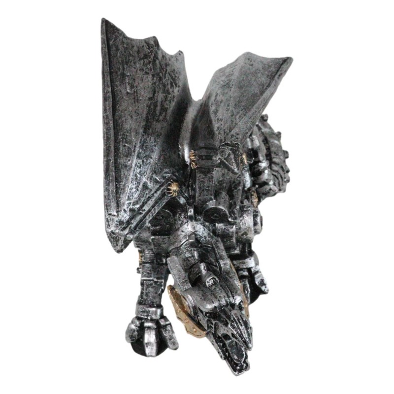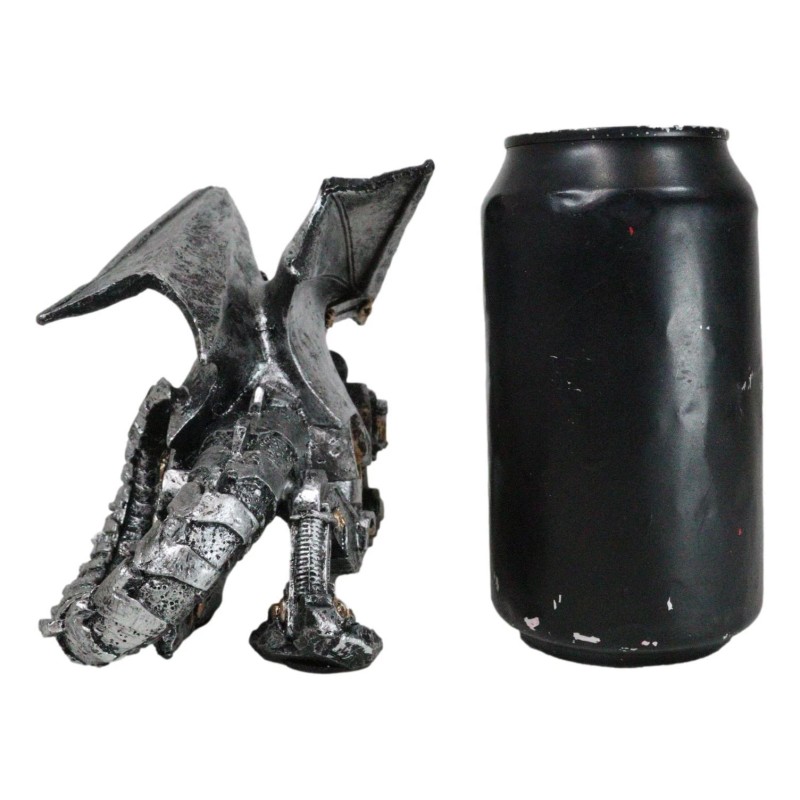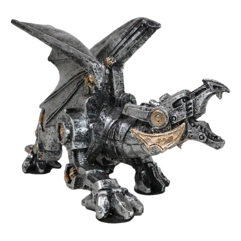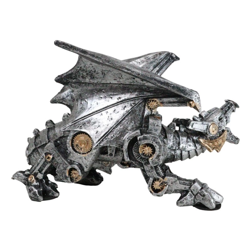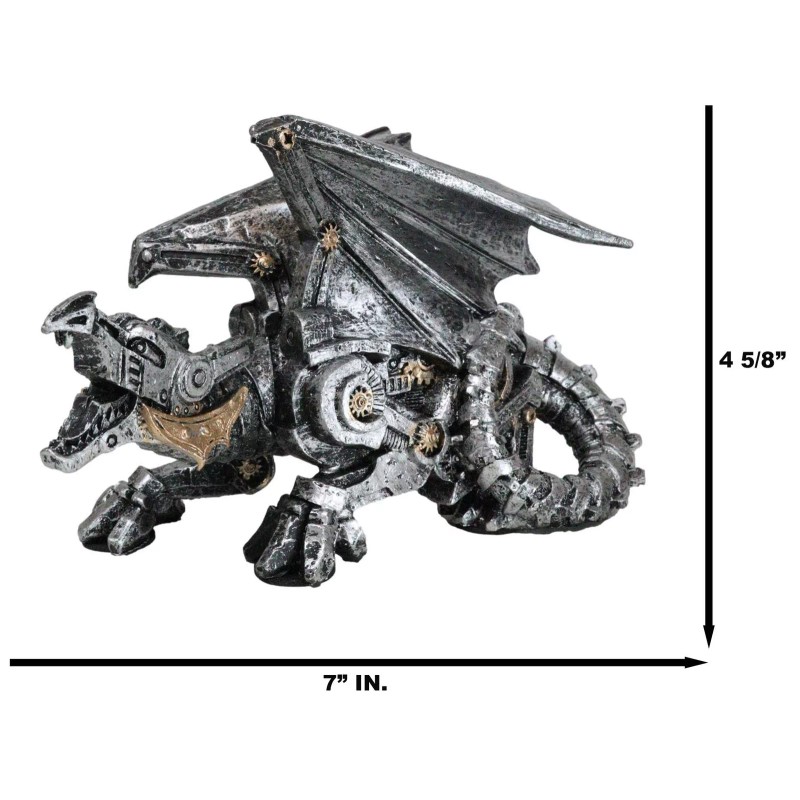 Ebros Gift Roaring Steampunk Silver Robotic Cyborg Winged Geared Clockwork Dragon Figurine