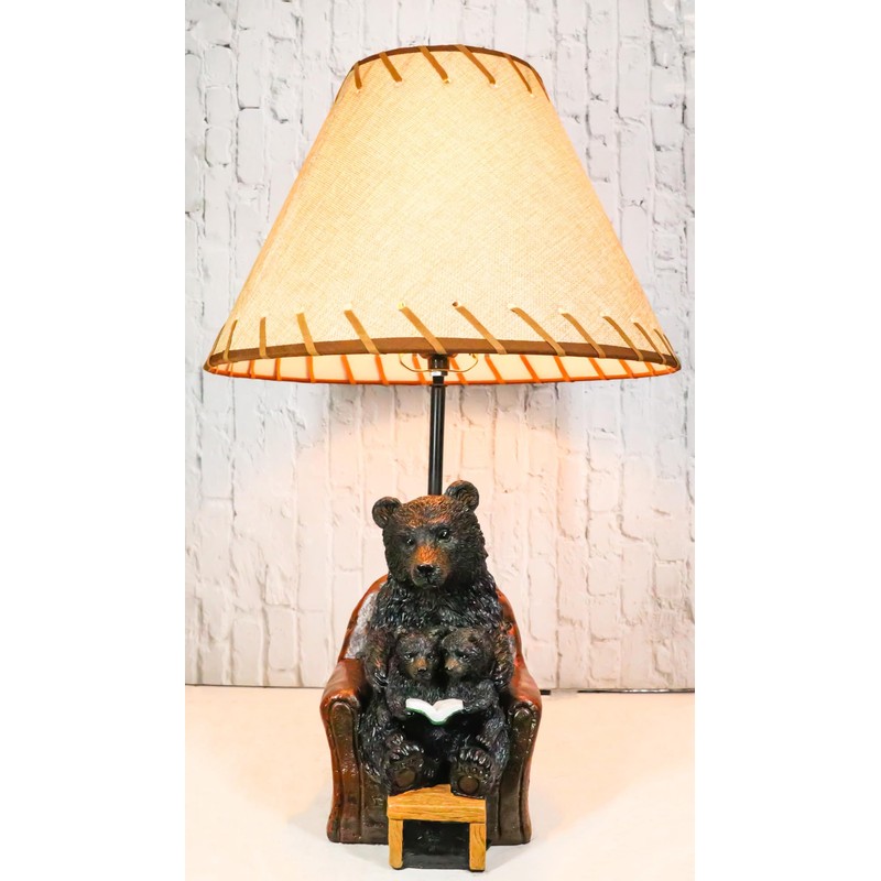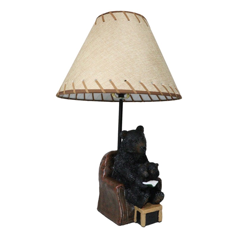 - This Beautiful Mama Bear With Cubs Table Lamp comes with the shade as pictured. It is made of polyresin, hand painted and polished, the quality finish is superb! Because all our products are individually hand painted work of art, the color tone may vary from the pictures.