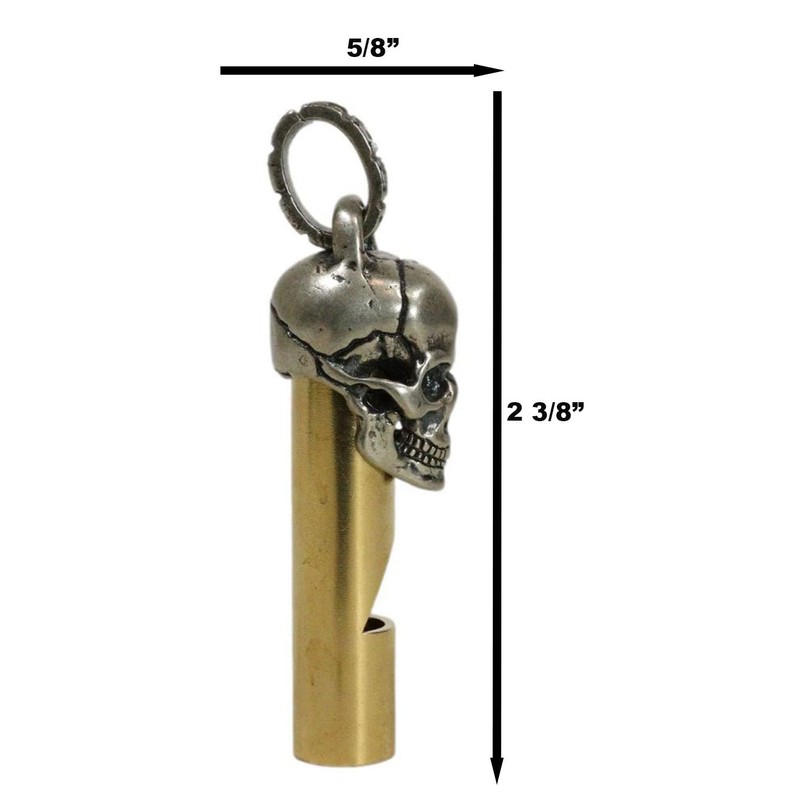 Ebros Gift Solid Brass and Steel Ghost Skull Head Death Whistle with Key Chain Ring Macabre Ossuary Accessory