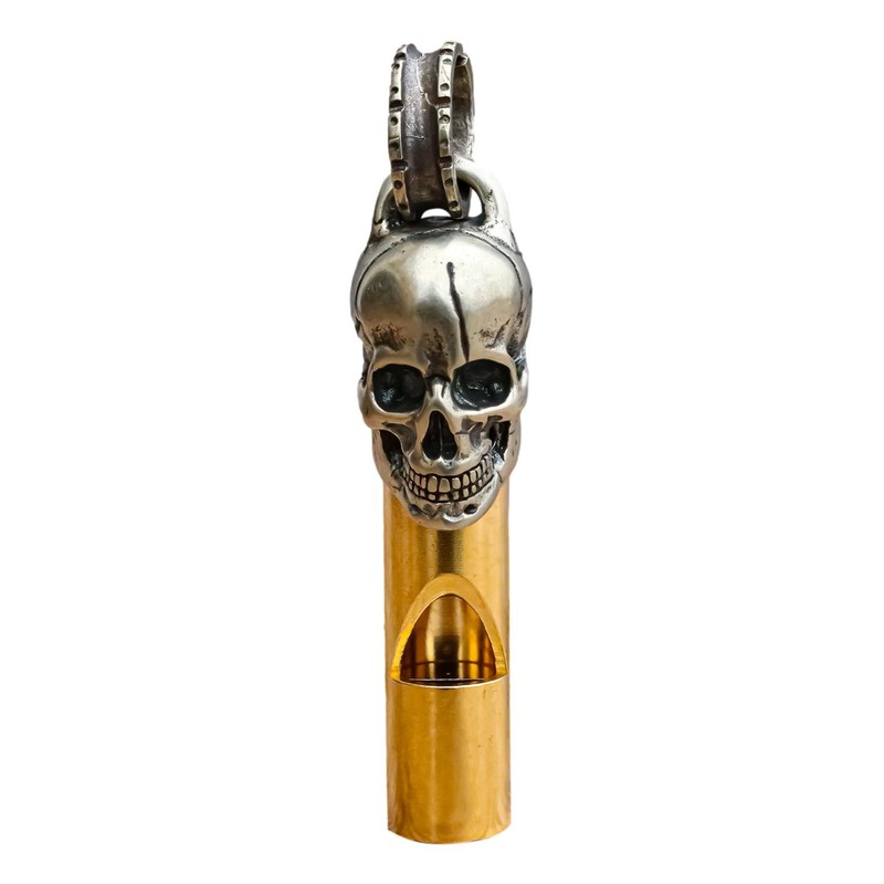 - Elevate your personal style and safety with our Brass Skull Whistle - a unique and intriguing accessory that's both fashionable and functional. Crafted from high-quality brass, this whistle not only showcases a captivating skull design but also serves as a reliable and loud signaling device. Whether you're an adventurer, a fashion-forward individual, or simply someone who appreciates distinctive accessories, the Brass Skull Whistle is a must-have addition to your collection.