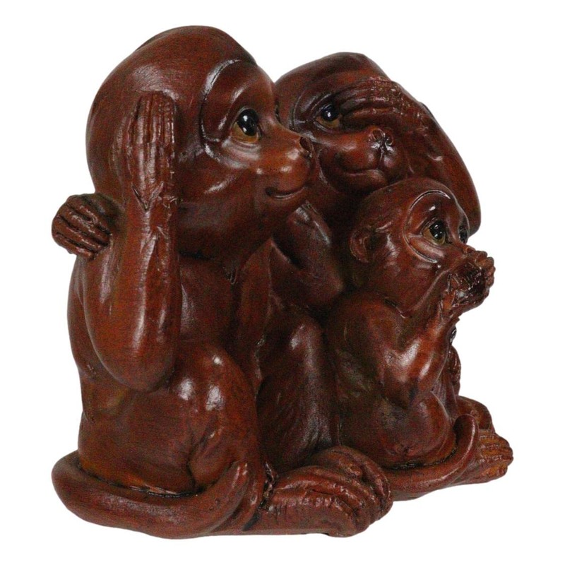 - Individually hand-crafted from cold cast resin painted in mahogany wood finish, the 3 monkeys sculpture measures approximately 3" tall, 3.5" long and 2.5" deep. It weighs about 6 ounces. Because our polyresin products are individually hand-crafted works of art, colors may vary slightly from what is pictured here.