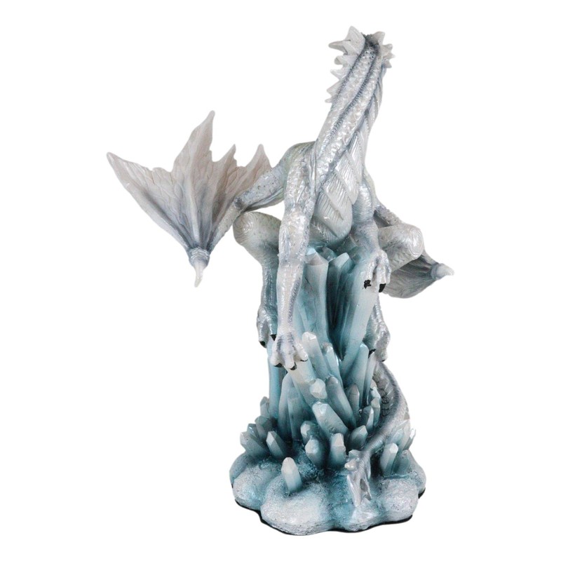 Ebros Gift White Arctic Snow Winter Dragon On Giant Crystal Ice Mountain Glacier Rocks Statue Winterland Dungeons and Dragons Fantasy Decorative Figurine
