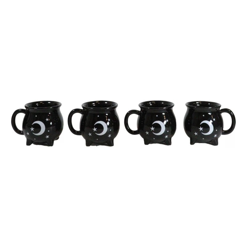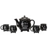 Ebros Gift Wicca Sacred Moon And Stars Witches Brew Black Cauldron Teapot And 4 Cups Set