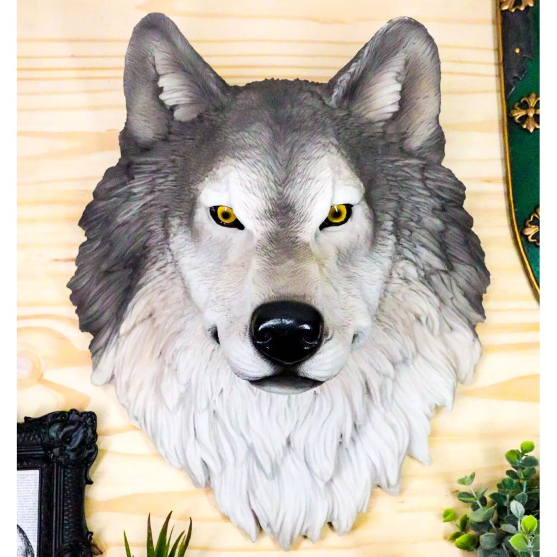 Ebros Large Fenrir Alpha Gray Wolf Head Wall Decor Plaque 14"Tall Art Decor