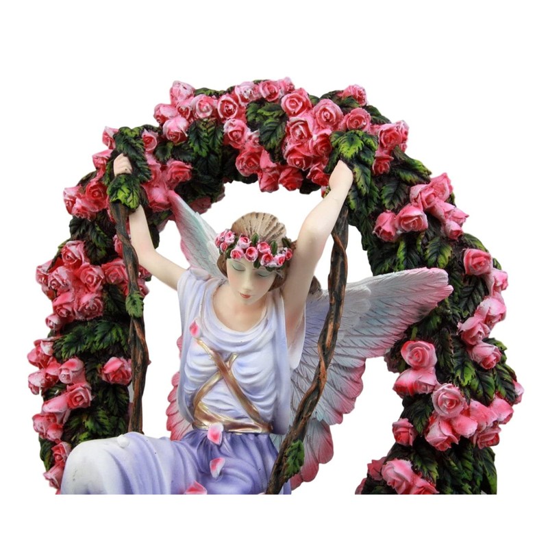 Ebros Large Sheila Wolk Masterpiece Gatekeeper Prayer Angel On Swing with Pale Pink Rose Laurel Vines Statue 16" Tall Fantasy Angels Fairies Pixies Memorial Desktop Shelf Mantelpiece Figurine