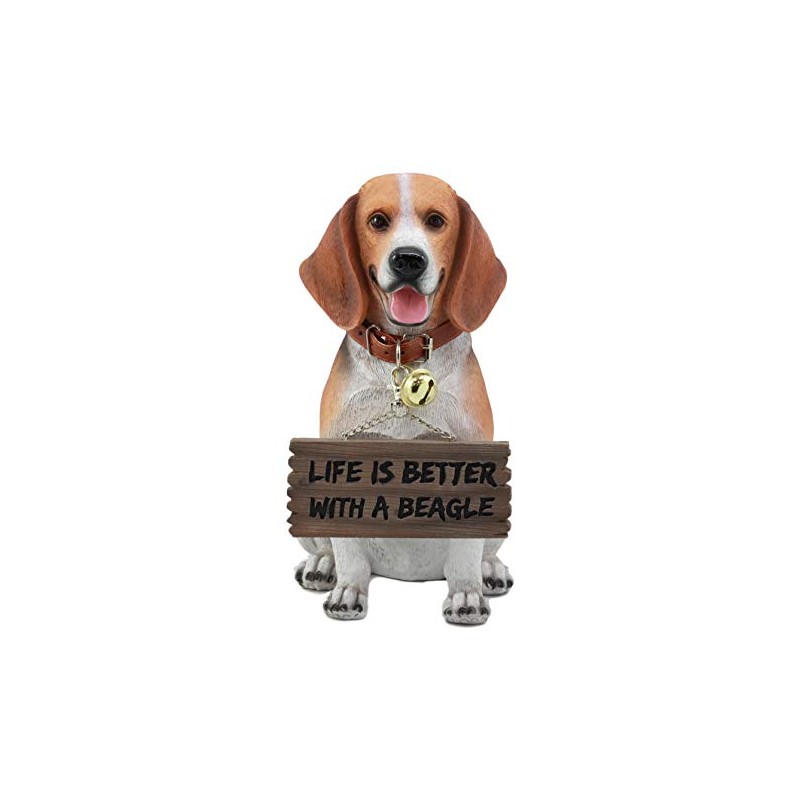 Ebros Lifelike Realistic Beagle Dog Welcome Greeter Statue 12" Tall Hound Dog Breed Collectible Decor Figurine with Jingle Collar Greeting Signs