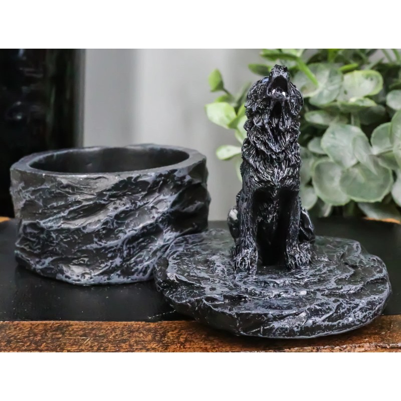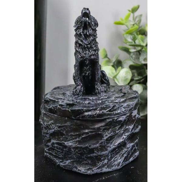 • This Howling Gray Wolf Round Jewelry Box Figurine is made of designer polyresin, individually hand painted and polished individually.