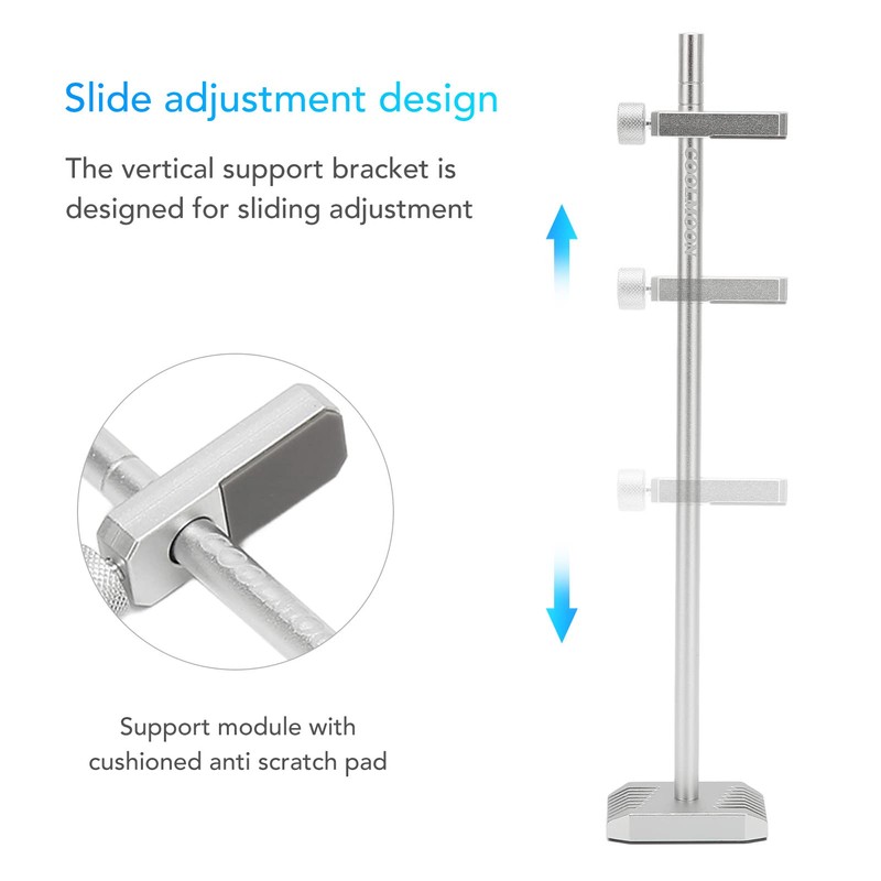 - AJUSTE DESLIZANTE: El soporte de soporte vertical está diseñado para el ajuste deslizante, y el módulo de soporte está equipado con una almohadilla amortiguadora antiarañazos.