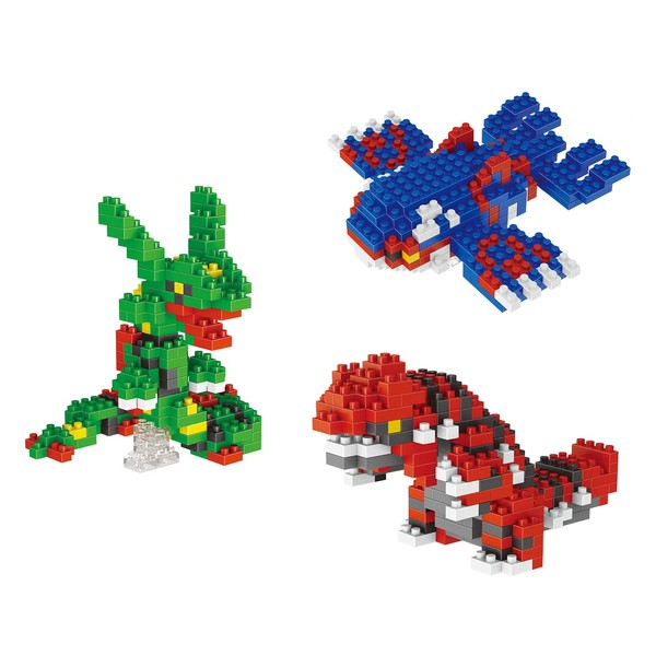 - Kyogre (221 block pieces), Rayquaza (202 block pieces), Groudon (231 block pieces)