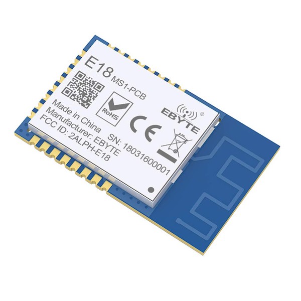 [Introduction]:The E18 MS1 PCB is a small 2.4GHz SMD radio module. Designed and produced by Chengdu Ebyte. The distance between each pin is 1.27mm. E18-MS1-IPX has been brought into stable mass production and is applicable for various applications (especially smart home). E18-MS1-PCB uses the original CC2530 RF chip from TI. The chip integrates an 8051 MCU and a wireless transceiver as well as an integrated CC2592 RF range extender, an integrated PA + LNA, which significantly increases communication distance and improves communication stability. Factory installed self-organizing network firmware based on the ZigBee protocol for serial data transmission. Based on the wireless inheritance of serial data, we have also added some special functions, including ADC sampling, remote PWM wave output control, and remote GPIO control. Users do not need to understand the complex principle of wireless communication, as long as the simple control instructions are sent, data transmission and intelligent control can be realized. This module supports secondary development, and the user can burn the program.