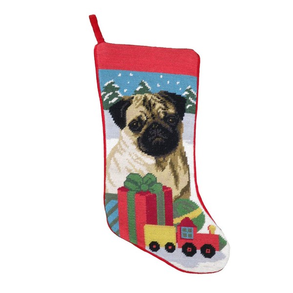 EC Pug Christmas Stocking 100% Wool Hand-Stiched Needlpoint: Precious