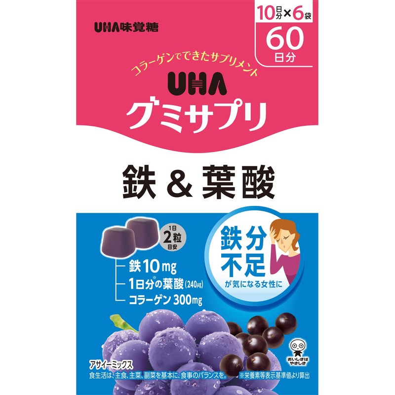【EC限定】UHAグミサプリ鉄&葉酸 60日分(10日分×6箱)