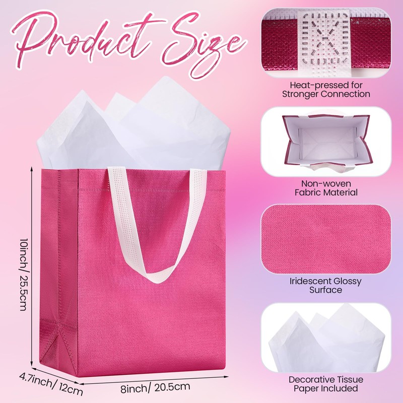 • Wide Range of Application: this reusable gift bags with tissue paper set is suitable for various scenarios such as weddings, Christmas, birthday parties, bachelors' parties, church events, daily shopping, exhibitions, etc.; It can not only be applied for packaging gifts, but also be suitable for retail packaging bags or goodie gift bags, meeting your diverse needs
