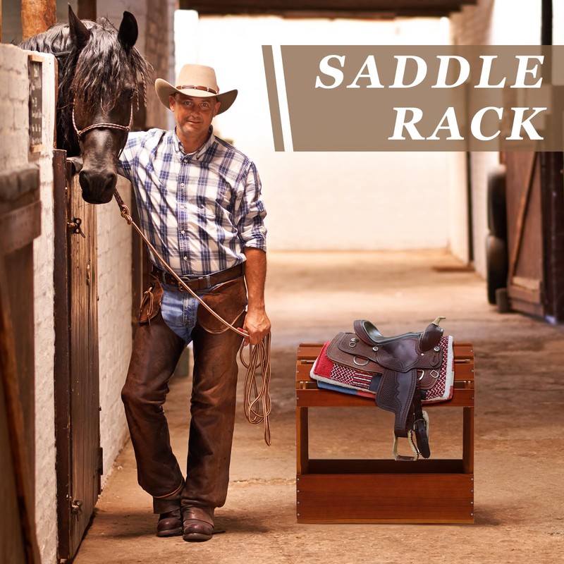 - Versatile Saddle Storage Solution: suitable for both English and Western saddles, the saddle rack stands doubles as a tack storage box; Its bottom shelf offers extra space for boots, brushes, hoof picks, brushes, leg wraps and horse saddle accessories, making it a practical choice for any horse lover who wants to elegantly display their trophy saddles at home